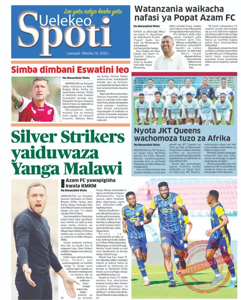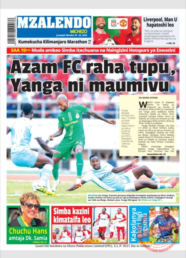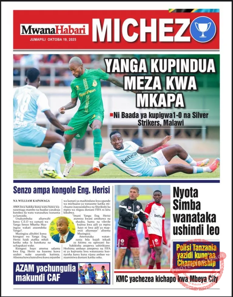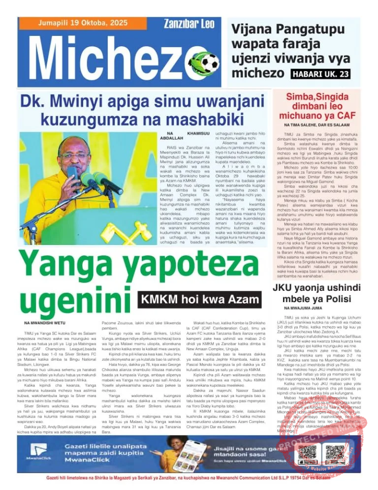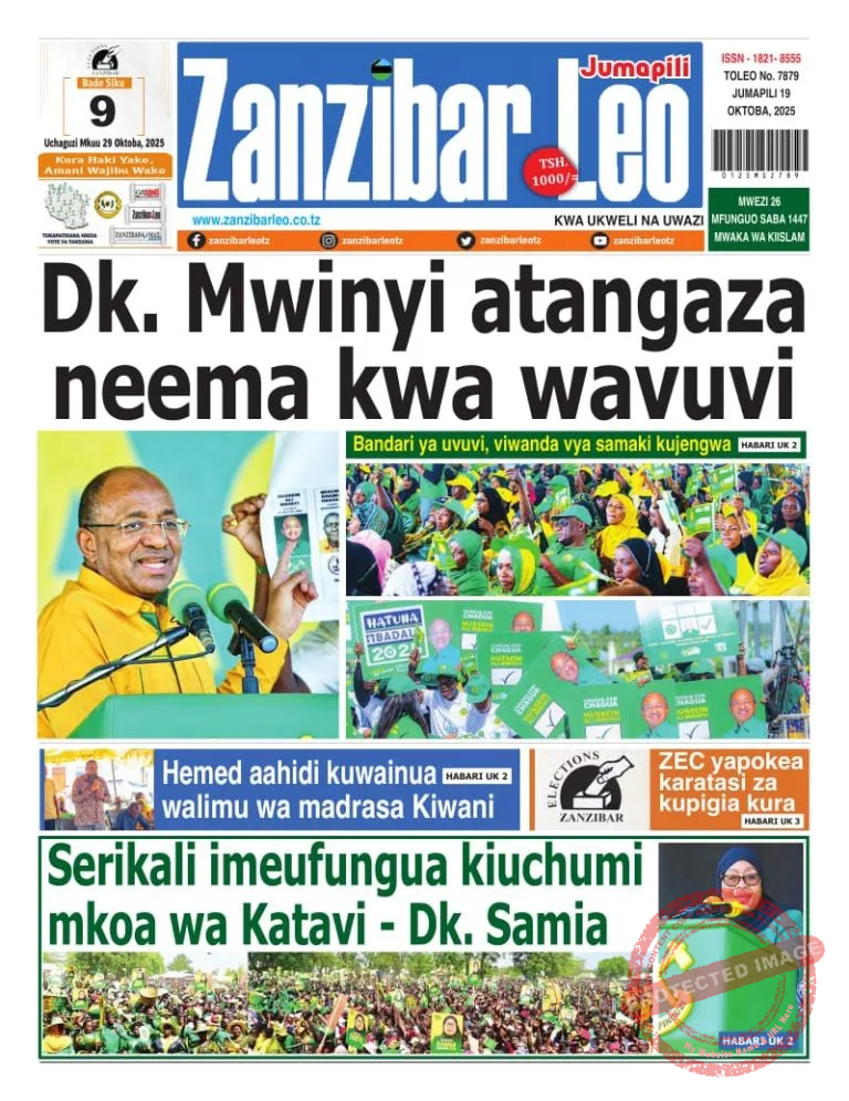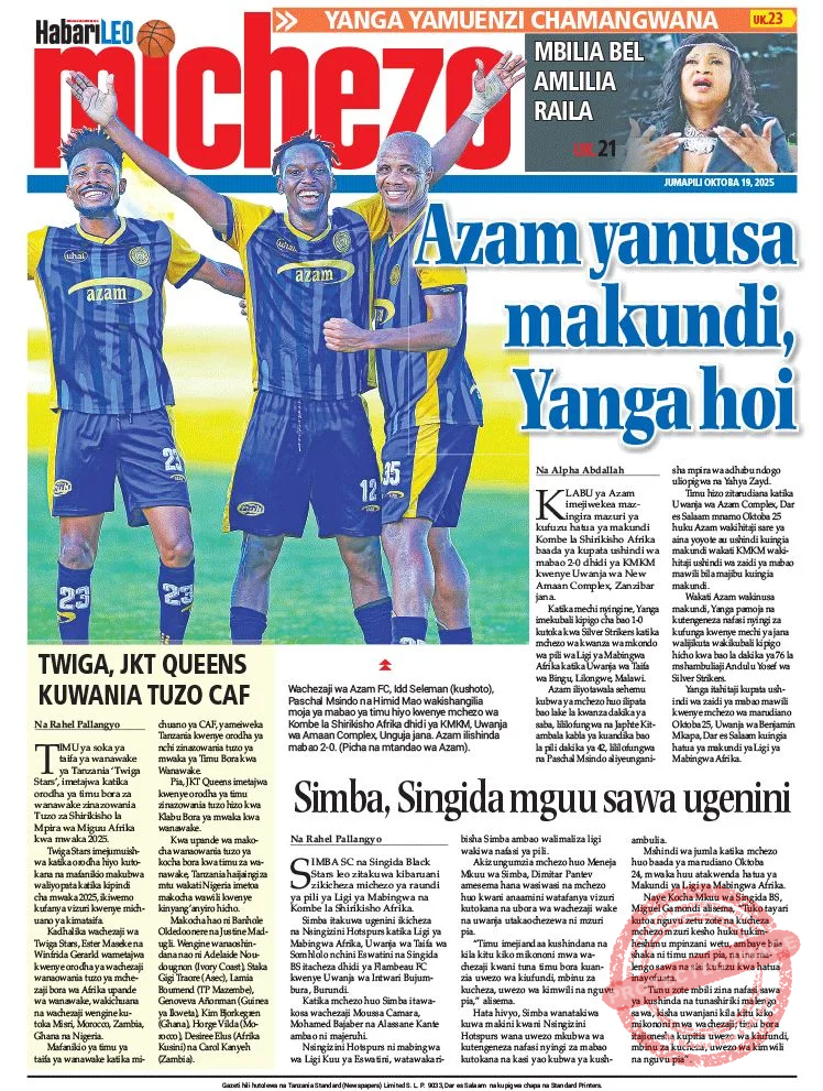Hizi ni kurasa za mbele za magazeti ya leo, Jumapili tarehe 19 Oktoba 2025, zenye kuangazia habari kuu za kitaifa na kimataifa. Kupitia vichwa vya habari vya magazeti mbalimbali, wasomaji wanapata muhtasari wa matukio makubwa yanayoendelea nchini, yakiwemo masuala ya siasa, uchumi, michezo, na matukio ya kijamii yanayogusa maisha ya Watanzania.