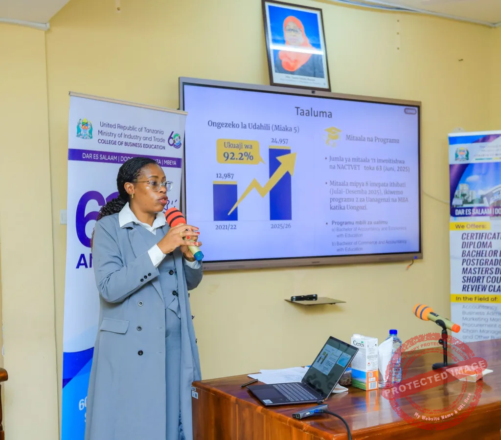 Naye Mkuu wa Chuo cha Elimu ya Biashara (CBE), Prof. Edda Lwoga, ameeleza kuwa mradi huo ulioanza Mei 25, 2023, umekuwa mhimili wa mabadiliko makubwa ya kitaaluma chuoni hapo. Alibainisha kuwa kukamilika kwa jengo hilo kutaongeza fursa za udahili kwa wanafunzi wengi wanaohitaji masomo ya biashara na ujasiriamali, ikiwemo kozi fupi ambazo zimekuwa na mahitaji makubwa kwa wadau wa sekta binafsi.